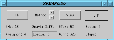 You can see the parameters of the hardware platform that will be run your application (number of processors as "#HW" and maximum of nieghbours for all of them as "#Neighbr"). If you press a button "HW" the live-running PVM parameters will appear.